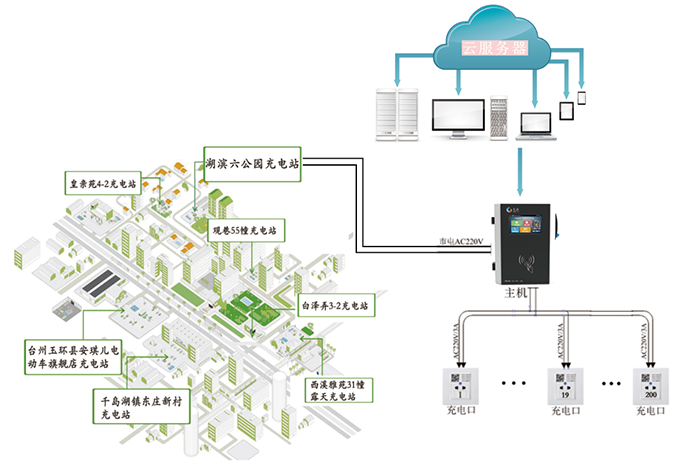 • 充電樁數量靈活配置(一臺主機可掛載5~200個充電樁)
